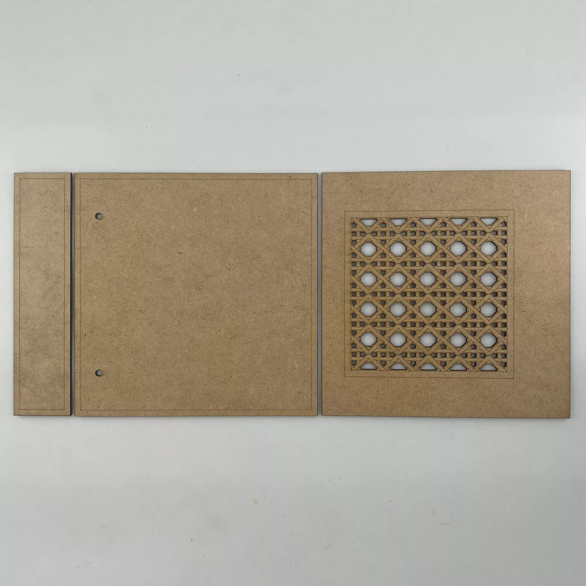 Album en mdf 3 mm 19 x 19 cm + tranche de 19 x 4,5 cm.