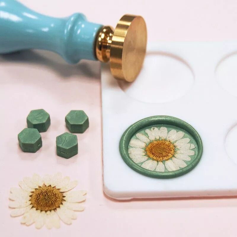 Créez vos sceaux en cire à l'aide de la cuillère, du manche, des tampons et des perles de cire.