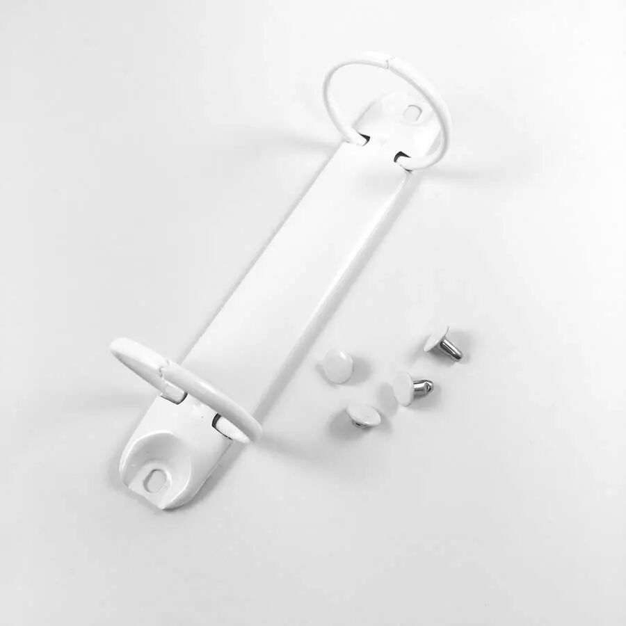 Mécanisme de classeur à anneaux en métal couleur blanc.
