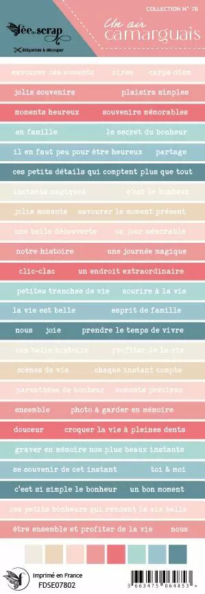 Accueil > Scrapbooking > Embellissements > Etiquettes > Etiquette un air camarguais - bandes de mots