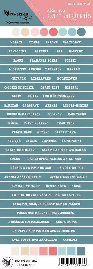 Accueil > Scrapbooking > Embellissements > Etiquettes > Etiquette un air camarguais - bandes de mots camargue et carterie