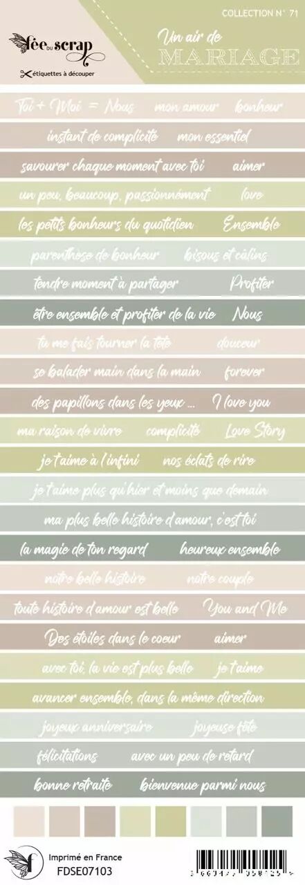 Accueil > Nos Marques > Fée du Scrap > Etiquette un air de mariage - bandes de mots italiques