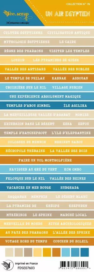 Accueil > Scrapbooking > Embellissements > Etiquettes > Etiquette un air égyptien - bandes de mots egypte