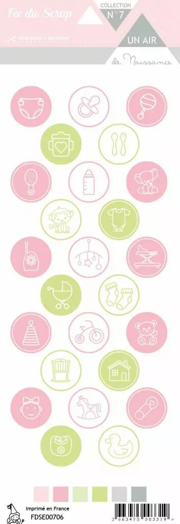 Accueil > 100% Fée du Scrap > Papiers > Etiquettes > étiquette Un air de naissance fille ronds motifs