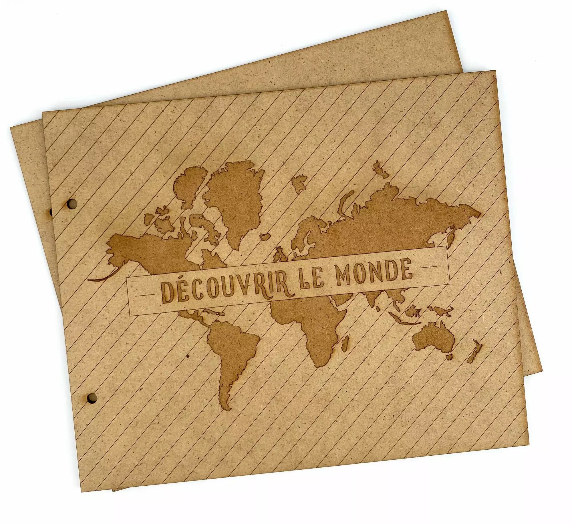 Album (faces avant et hier) au format 24,9x20,9 cm, avec 2 trous pour passer les anneaux de la taille de votre choix.