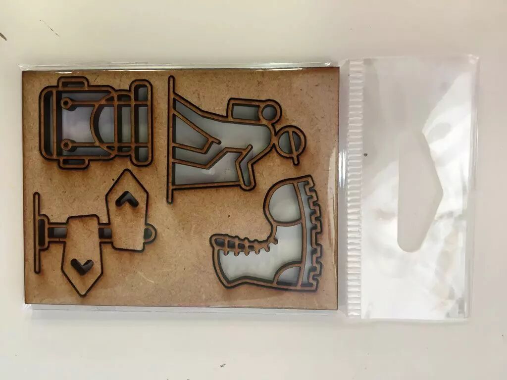 Lot d'embellissements à détacher sur une planche de mdf 3 mm de 6 x 8 cm