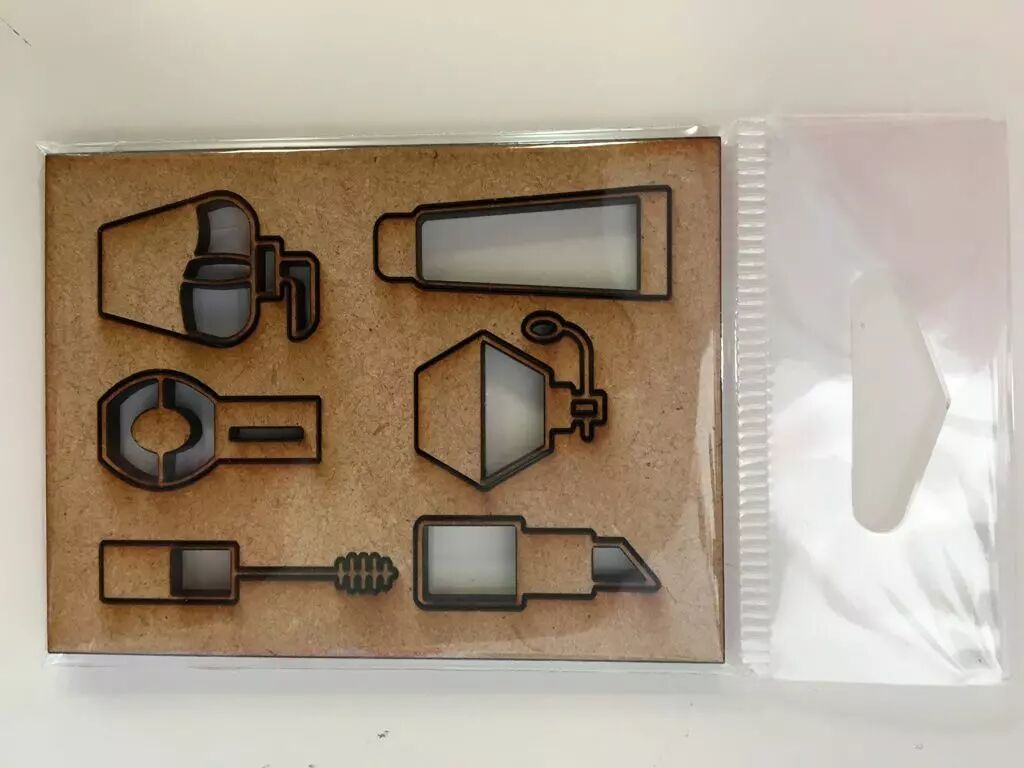Lot d'embellissements à détacher sur une planche de mdf 3 mm de 6 x 8 cm