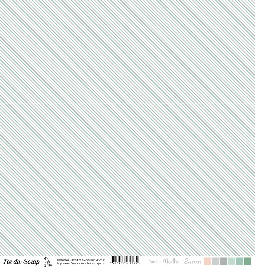 Accueil > Nos Marques > Fée du Scrap > feuille combo menthe/saumon rayures diagonale