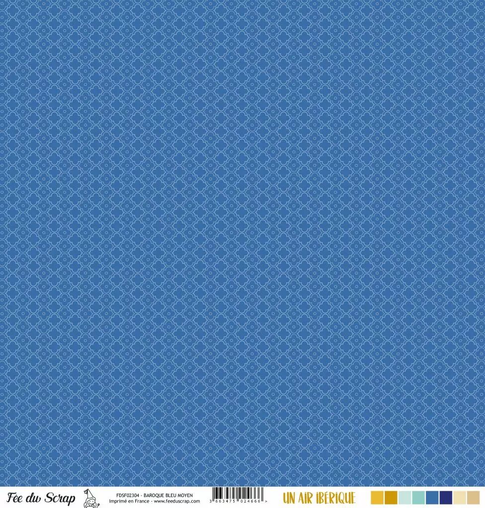 Accueil > Scrapbooking > Papiers > Papiers imprimés à motifs > Feuille un air ibérique - baroque bleu moyen