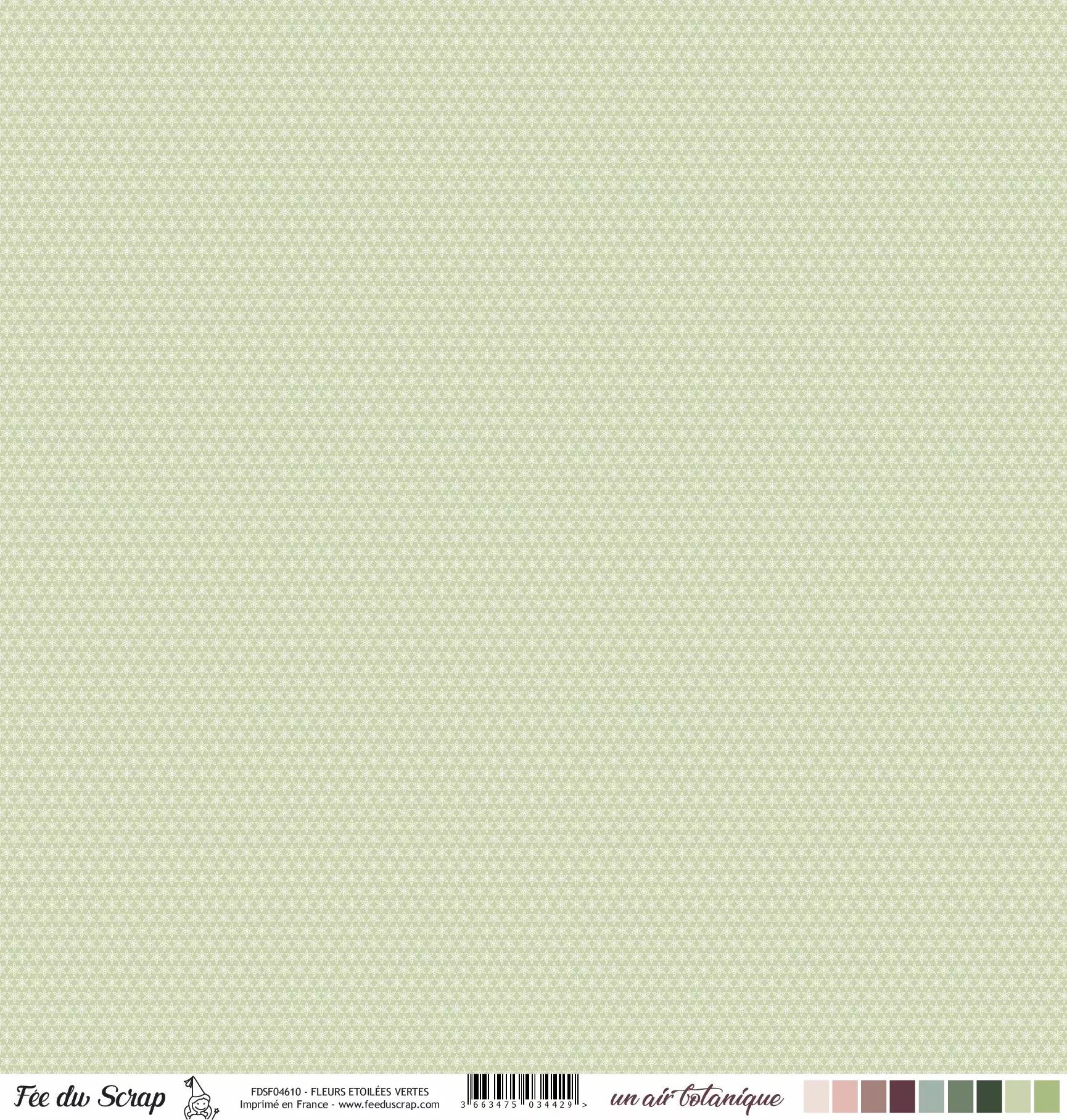 Accueil > Scrapbooking > Papiers > Papiers imprimés à motifs > Feuille un air botanique - Fleurs Etoilées Vertes