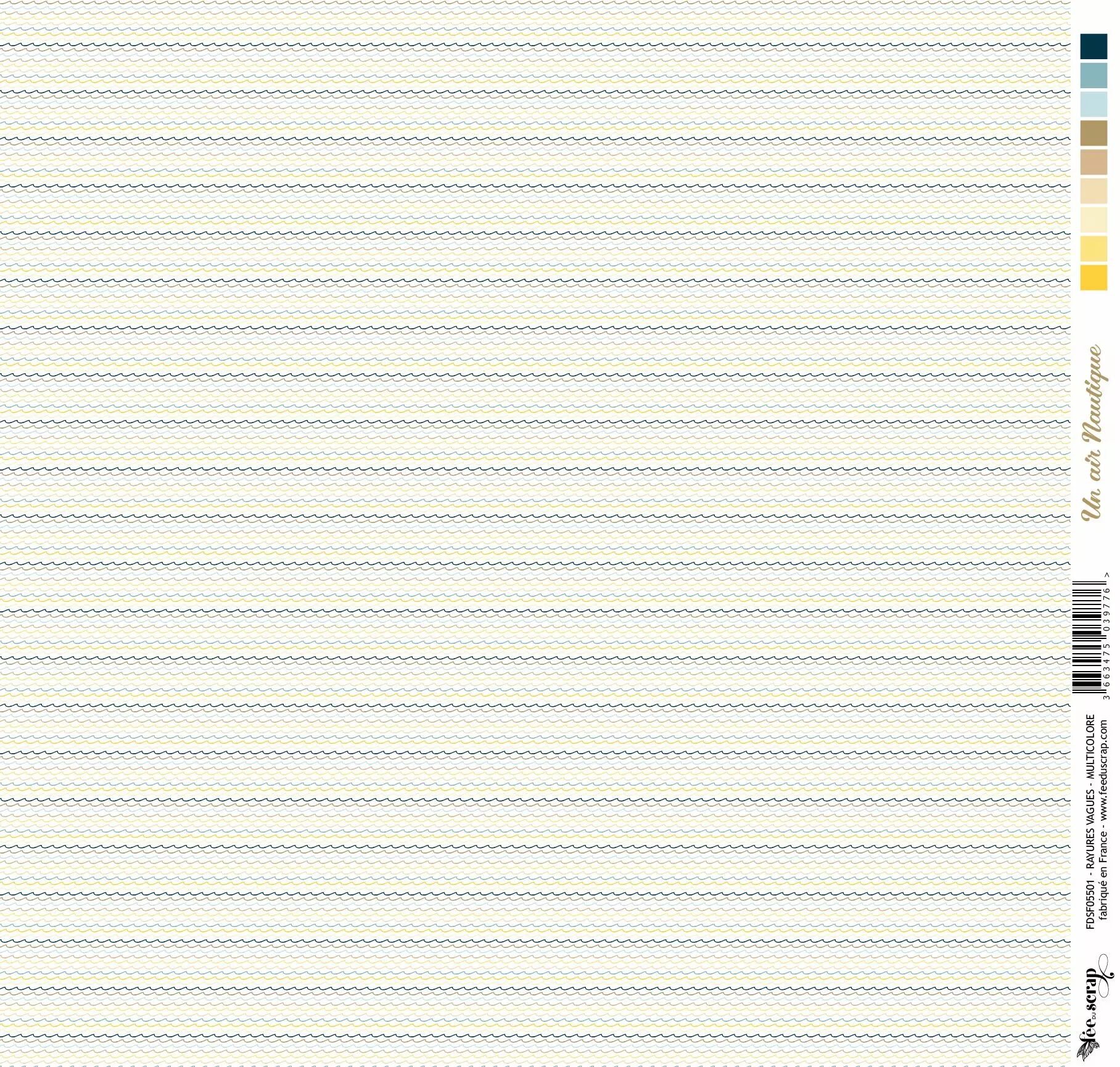 Accueil > Scrapbooking > Papiers > Papiers imprimés à motifs > Feuille un air nautique - rayures vagues - multicolore