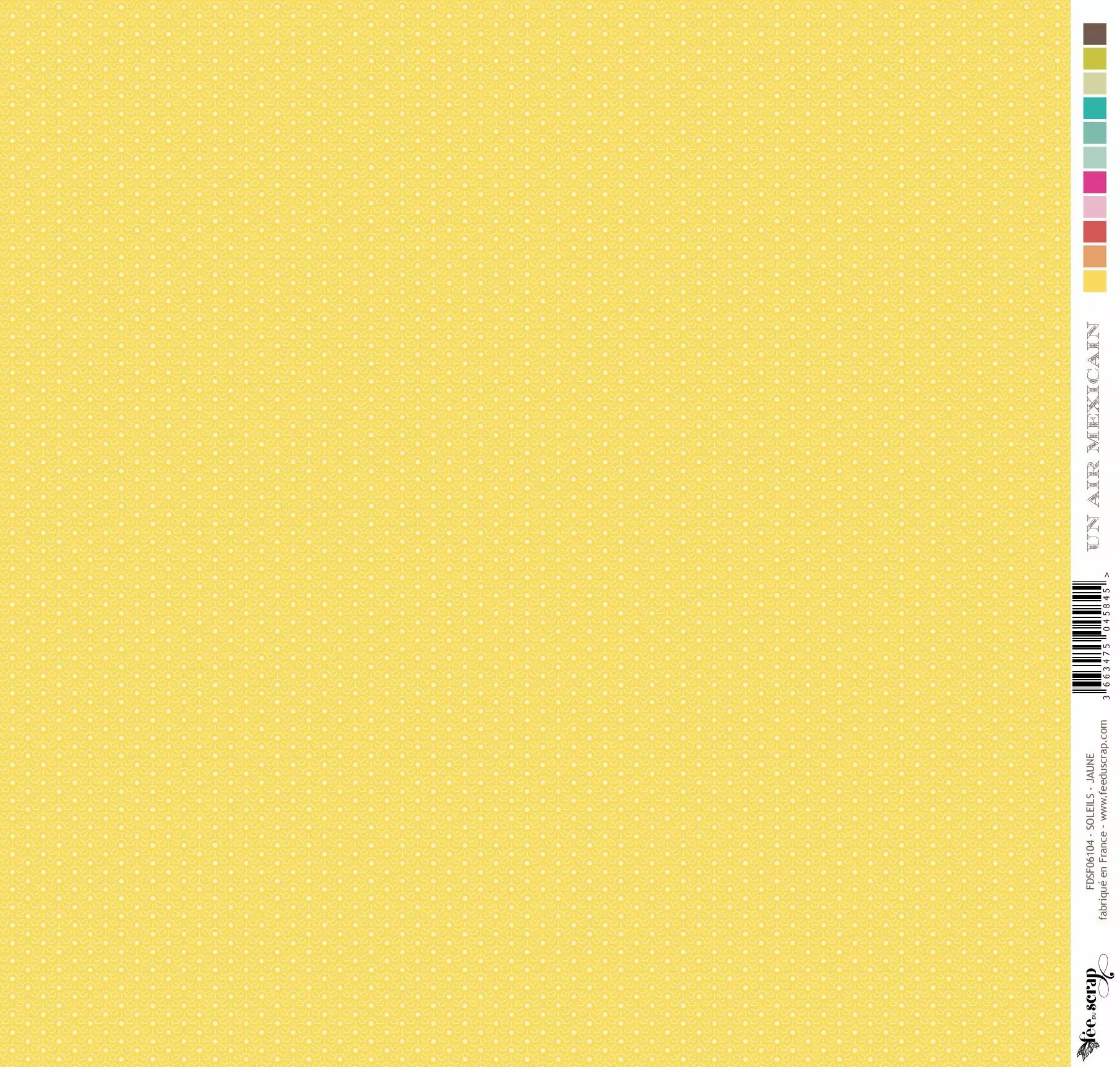 Accueil > Scrapbooking > Papiers > Papiers imprimés à motifs > Feuille un air mexicain - soleils - jaune