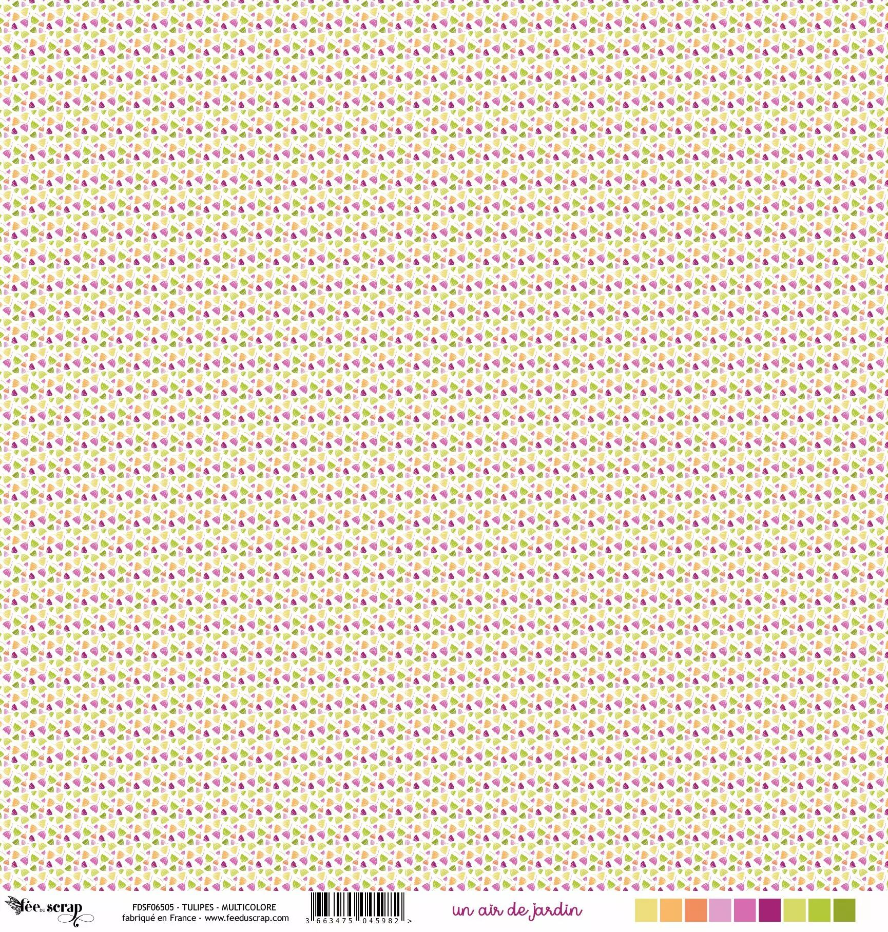 Accueil > Scrapbooking > Papiers > Papiers imprimés à motifs > Feuille un air de jardin - tulipes - multicolore