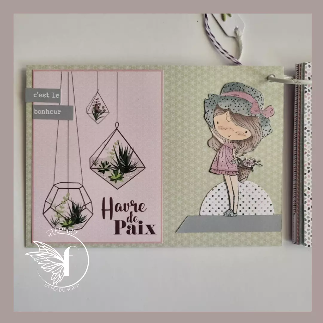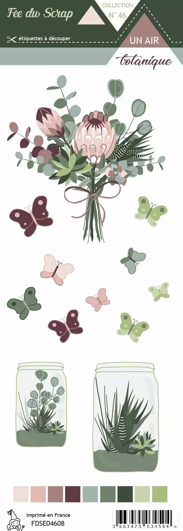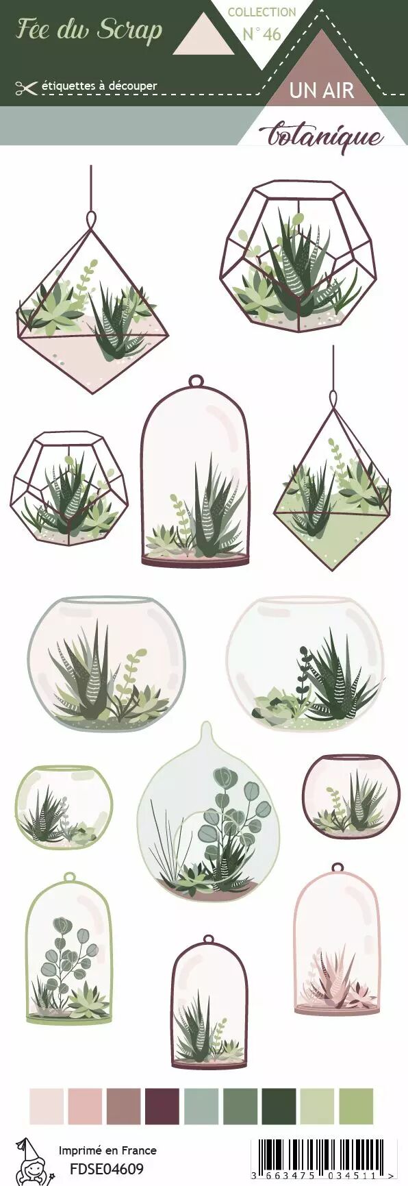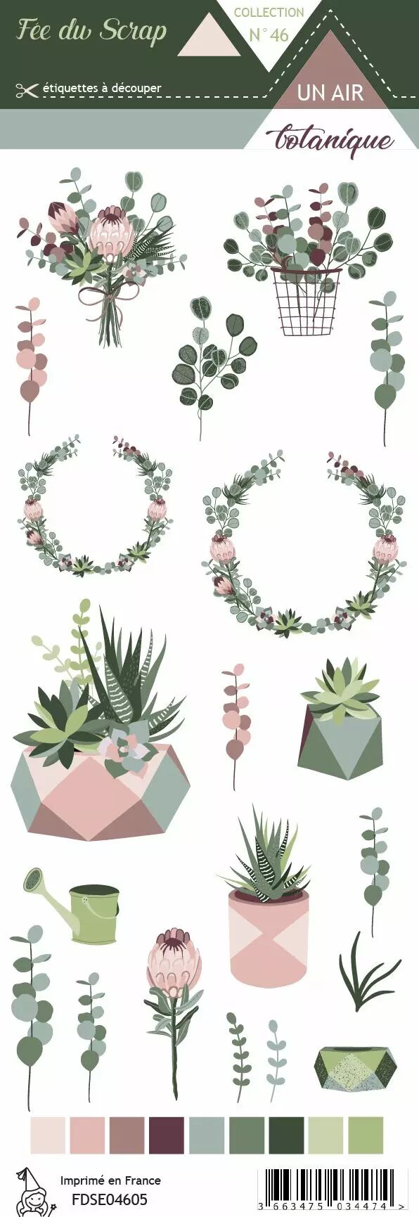 Superbe collection de papiers, couleurs magnifiques, plusieurs verts différents qui s'accordent avec les photos de fleurs du jardin ou cactus... Les planches d'étiquettes sont très bien assorties, pots de fleurs et pancartes, j'adore.
