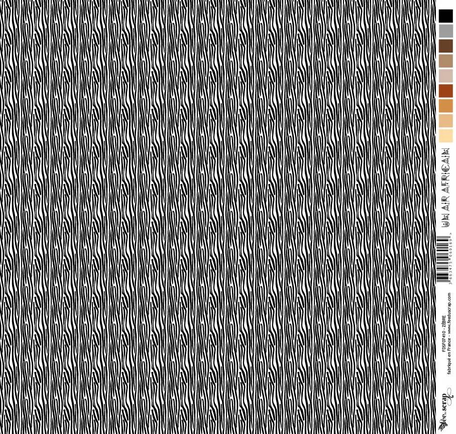 Accueil > Scrapbooking > Papiers > Papiers imprimés à motifs > Feuille un air africain - zèbre - noir et blanc
