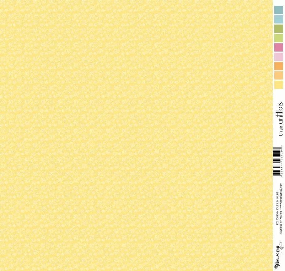Accueil > Nos Marques > Fée du Scrap > Feuille un air antillais - soleils - jaune