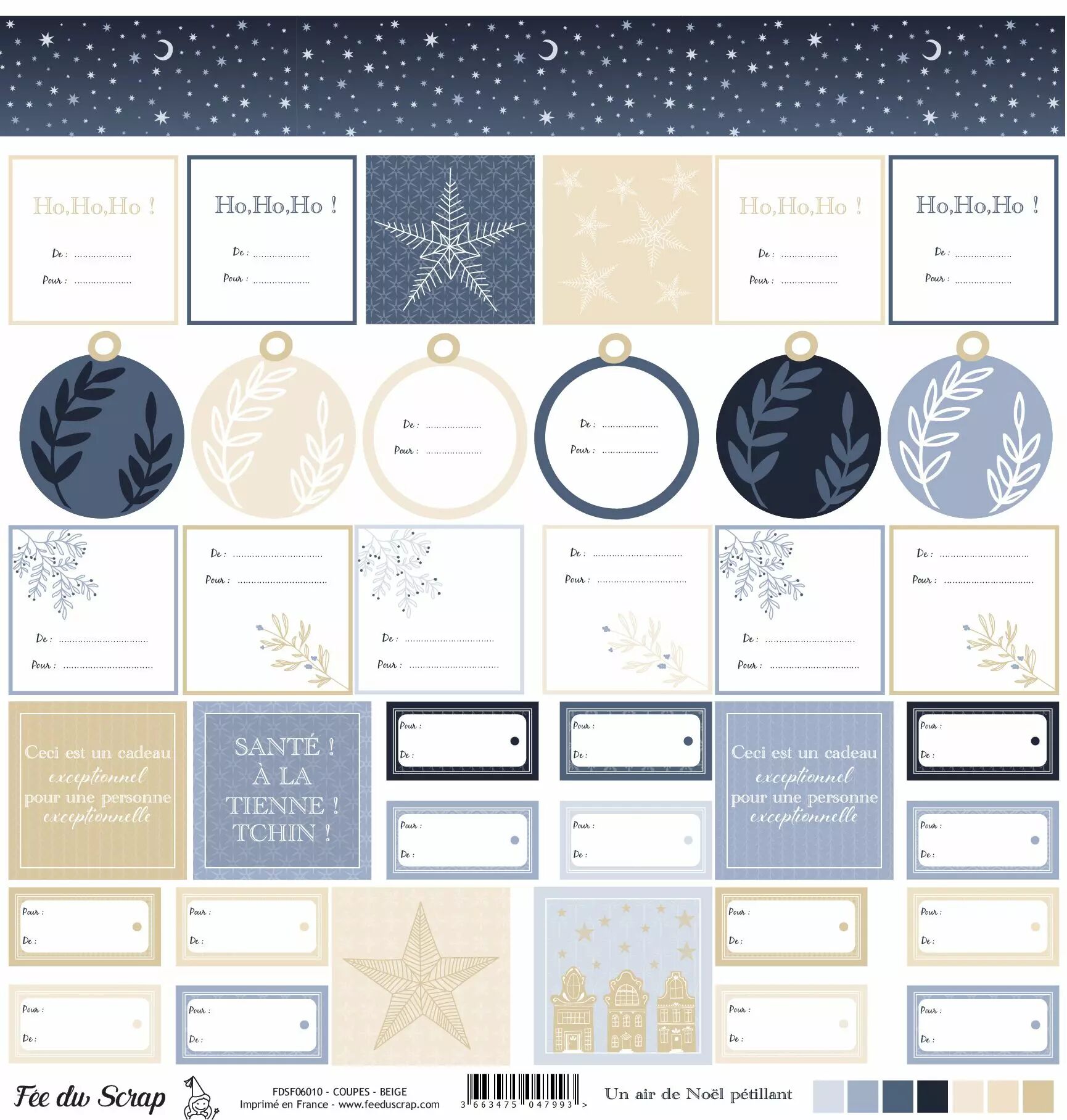 Accueil > Scrapbooking > Papiers > Papiers imprimés à motifs > Feuille un air de noël pétillant - étiquettes cadeaux
