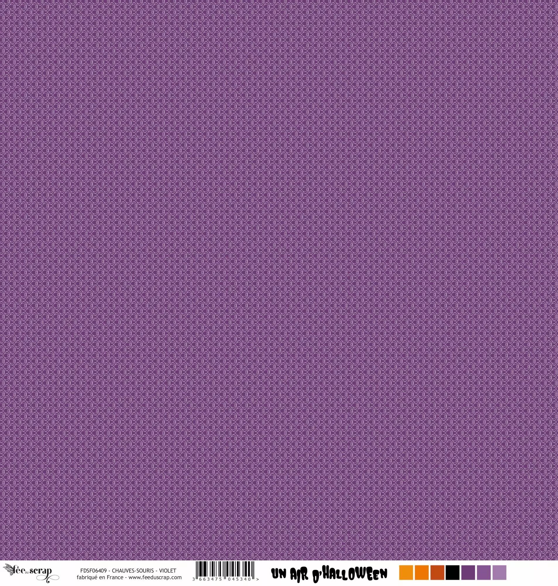 Accueil > Scrapbooking > Papiers > Papiers imprimés à motifs > Feuille un air d'halloween - chauve-souris - violet