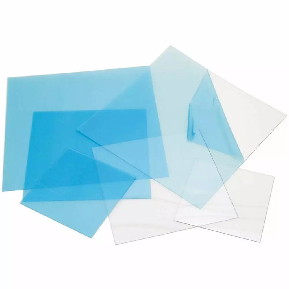 Cette feuille de plastique lourd de 0,020 pouces d'épaisseur est protégée par une pellicule détachable et est parfaitement transparente. Peut être découpée avec des ciseaux, des couteaux de bricolage et de nombreuses machines à découper. Peut être embossée à chaud.