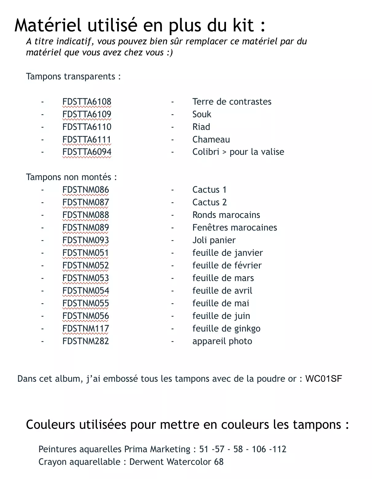 10 feuilles + 10 étiquettes “un air marocain”