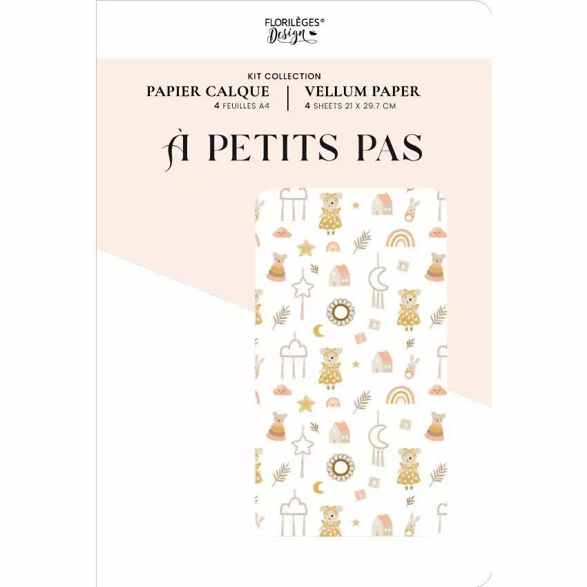 Cette collection contient 4 feuilles de papier calque au format 30,5 x 30,5 cm et A4 au grammage de 112g.