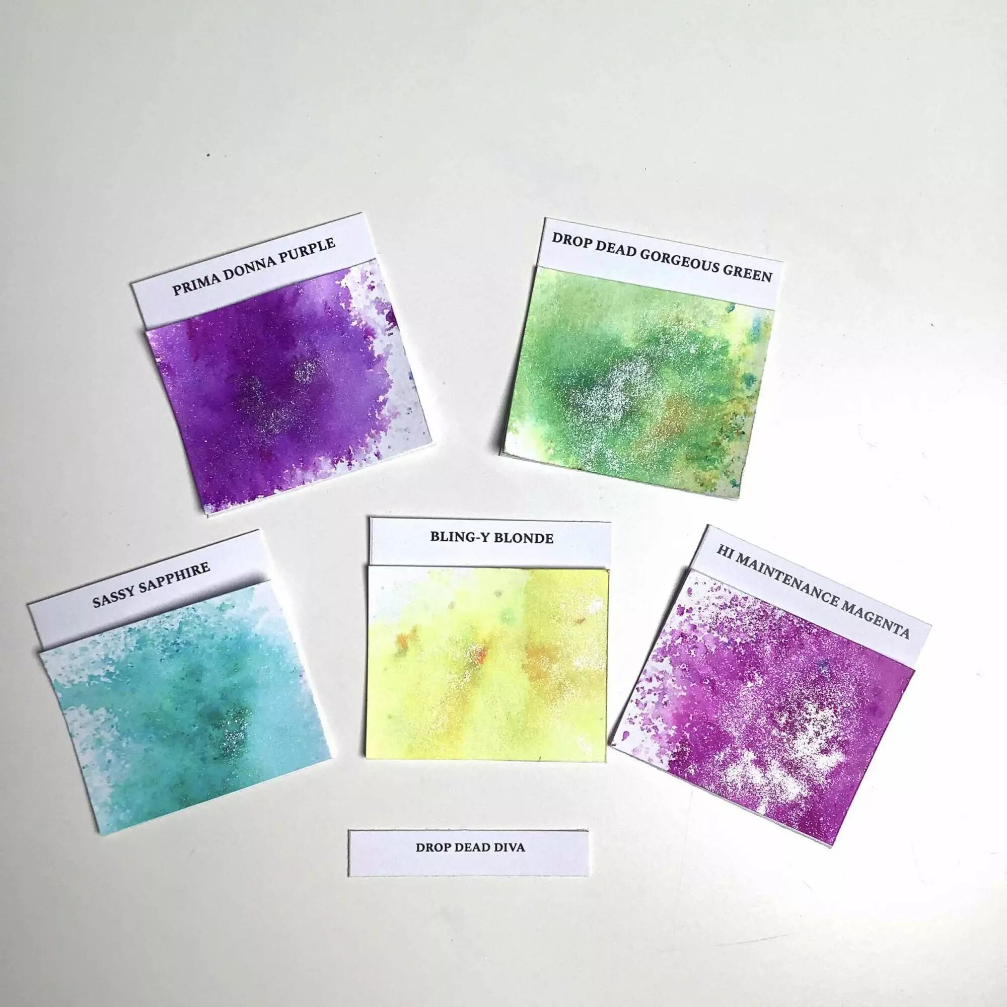 Ce set contient : Sassy Sapphire- Prima Donna Purple- Drop Dead Gorgeous Green- Hi Maintenance Magenta- Bling-y Blonde