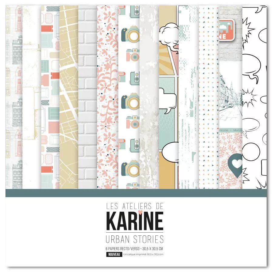 Accueil > Nos Marques > Les Ateliers de Karine > Pack 6 papiers imprimés + 1 calque Urban Stories