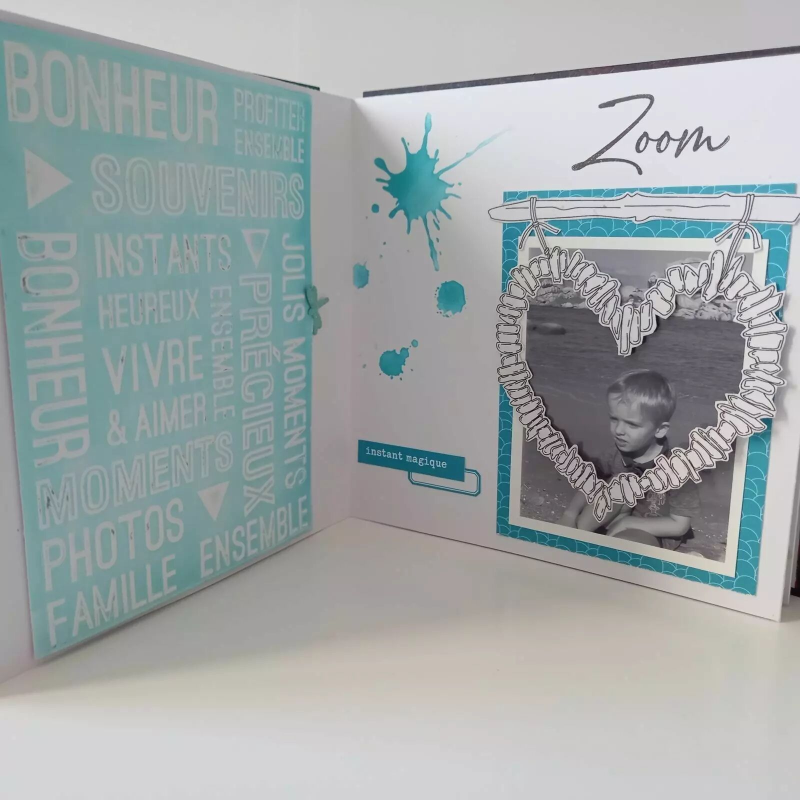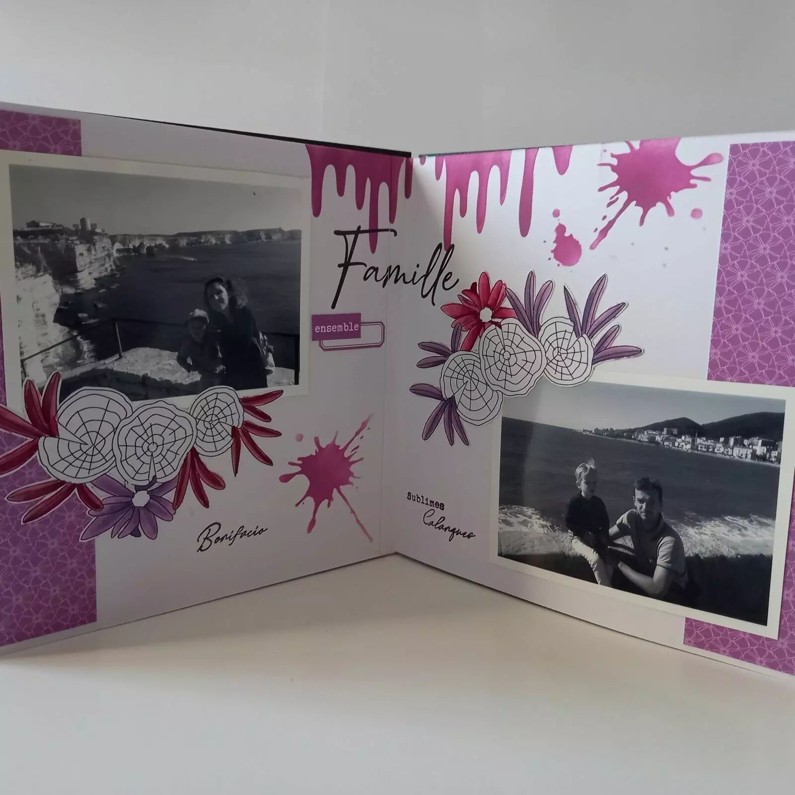 Nous vous conseillons le double face pour coller vos papiers, pour un résultat parfait, sans bavure et qui ne gondole pas.