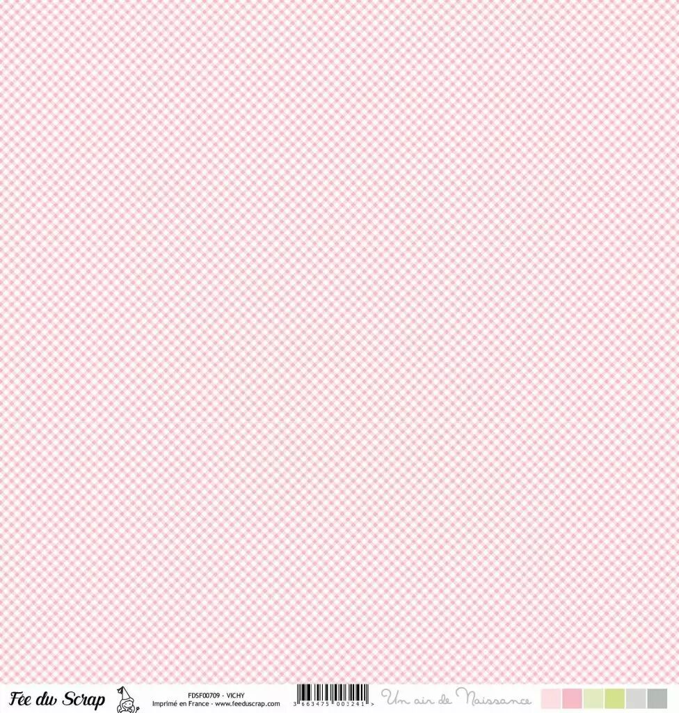 Accueil > Scrapbooking > Papiers > Papiers imprimés à motifs > feuille Un air de naissance fille vichy