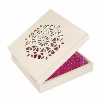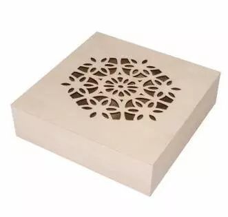 BOITE EN BOIS, DECOUPEE AU LASER, 18.5x18.5x5 CM