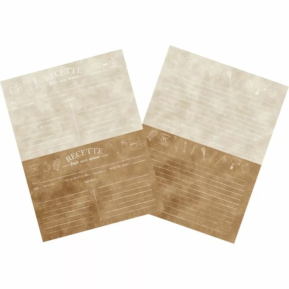Ensemble de 15 feuilles imprimées recto-verso format 15 x 20 cm 250 g,  pour noter des recettes.