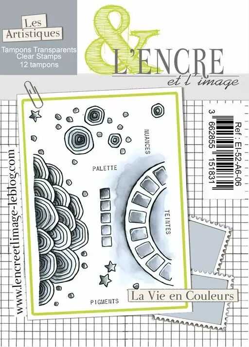 Réf. : EI-52-A6-06 Planche de 12 tampons clears - La Vie en Couleurs - L'Encre et l'Image.