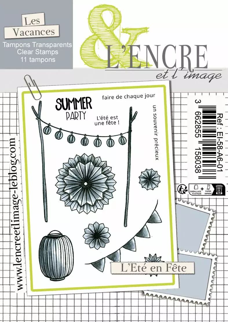 Réf. : EI-58-A6-01 Planche de 11 tampons clears -L'Eté en Fête .