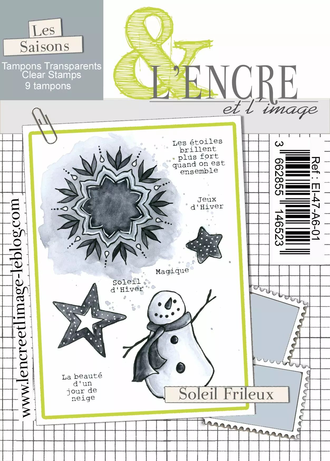 Réf. : EI-47-A6-01 Planche de 10 tampons clears - Soleil Frileux - L'Encre et l'Image.