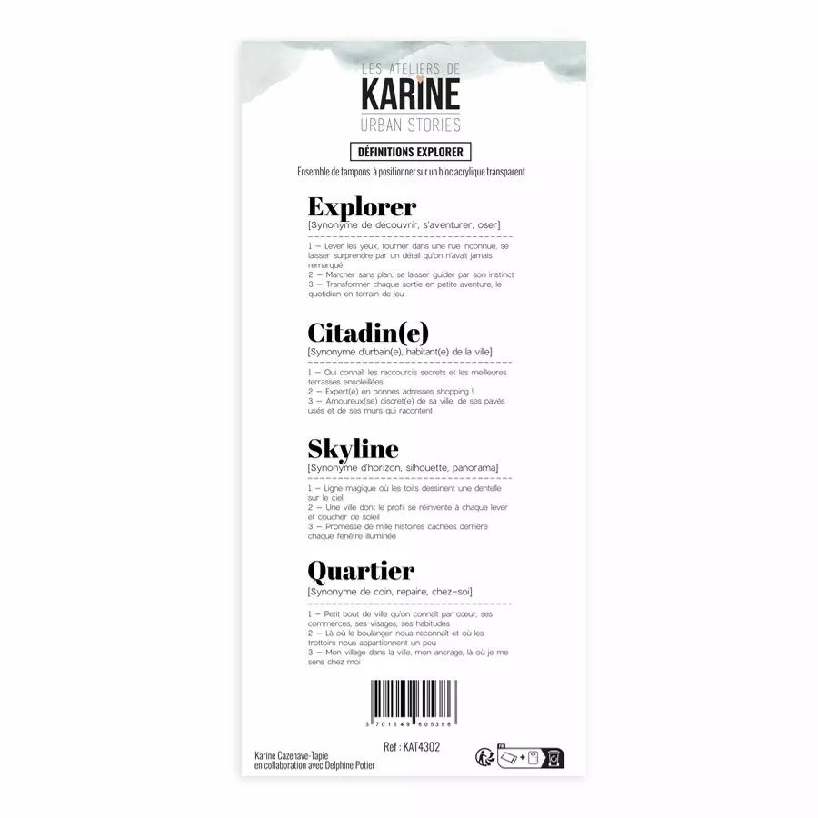 Accueil > Nos Marques > Les Ateliers de Karine > Tampons transparents Définitions Explorer Urban Stories