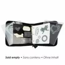Dans ce dossier à la mode, vous pouvez stocker rapidement et facilement vos tampons transparents, tampons en caoutchouc, matrices (die) et dossiers de gaufrage. Le dossier est équipé d'une reliure à anneaux et d'une fermeture à glissière. La poignée pratique garantit que vous pouvez facilement prendre le dossier avec vous. Dans le classeur, il y a au moins de la place pour 8 couvertures d'insertion ou des feuilles magnétiques. À utiliser en combinaison avec des feuilles magnétiques, des feuilles magnétiques dans des couvercles pour plaquettes, des couvercles pour plaquettes transparents et des feuilles de stockage pour tampons